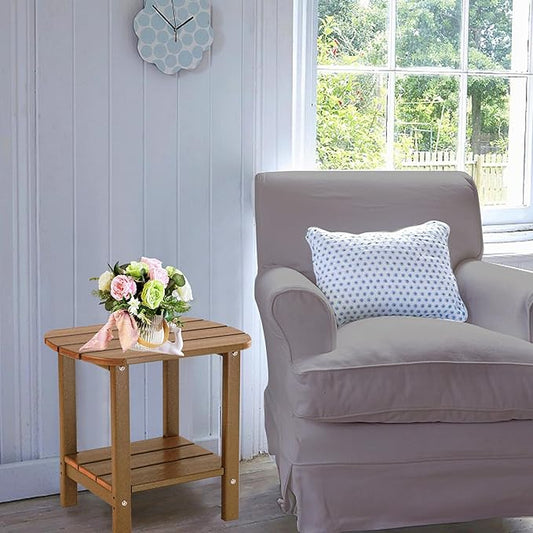LZRS Double Adirondack Side Table, Outdoor Side Tables, End Tables for Patio, Backyard,Pool, Indoor Companion, Easy Maintenance & Weather Resistant(Teak)