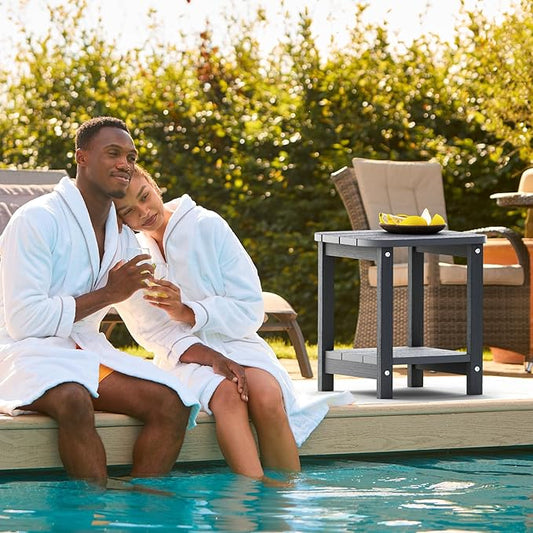 LZRS Double Adirondack Side Table, Outdoor Side Tables, End Tables for Patio, Backyard,Pool, Indoor Companion, Easy Maintenance & Weather Resistant(Grey)