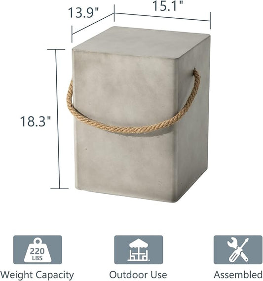 COSIEST Concrete Side Table, Rectangular Outdoor Side Table w Hemp Rope Handles,15''Patio Side Tables End Table, Outdoor Accent Coffe Table for Garden and Patio, Grey