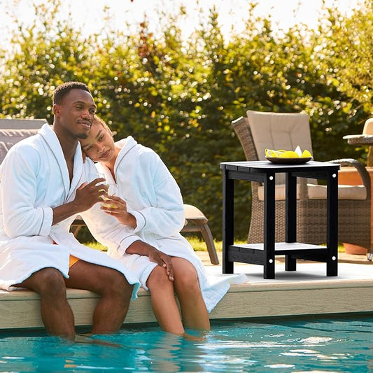 2-Tier Outdoor Side Table, 16" Adirondack Small Side Table All Weather Resistant, Patio End for Outside or Indoor, Patio, Yard, Pool, Porch, Garden, Black