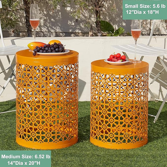 Y&M Set of 3 Stacking Coffee Table for Living Room, Patio Side Table, Indoor End Tables for Bedroom, Outdoor Decorative Garden Stool with Heavy Duty Metal Frame Modern Industrial Decor - Orange