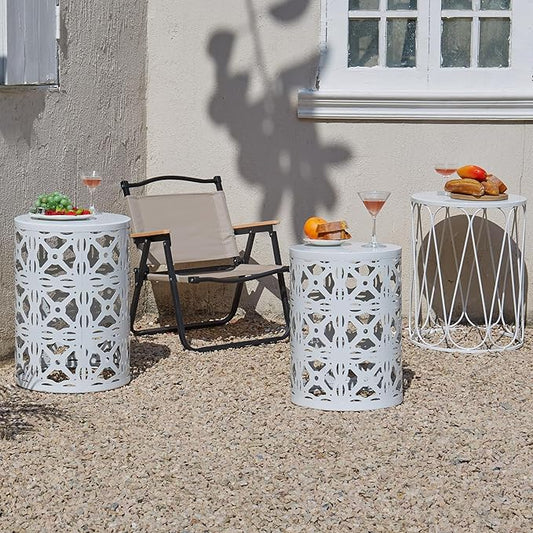 Y&M Set of 3 Stacking Coffee Table for Living Room, Patio Side Table,Indoor End Tables for Bedroom, Outdoor Decorative Garden Stool with Heavy Duty Metal Frame Modern Industrial Decor - White