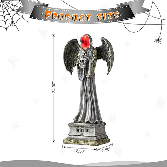 Glitzhome Halloween Porch Decorations, Lighted Halloween Front Porch Standing Sign Decor with Timer, Resin Grim Reaper Sign for Indoor Patio Party, 24" H