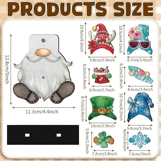 Blulu Interchangeable Wooden Gnome Decor DIY Holiday Seasonal Fall Gnomes Halloween Tiered Tray Decoration with Magnet Pieces Halloween Welcome Sign for Holiday Decorations(Fresh)