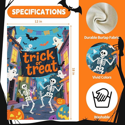 Halloween Garden Flag 12x18 Inch Double Sided, Outdoor Burlap Yard Decor for Porch, Patio, Holiday Decorations, Purple