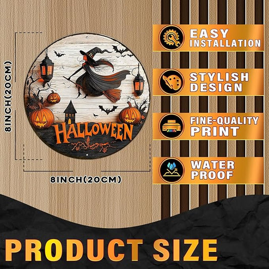 PEACHGARDEN Round Happy Halloween Witch Vintage Sign Pumpkin Metal Tin Sign for Home Bar Kitchen Hotel Dining Room Coffee 8x8inch