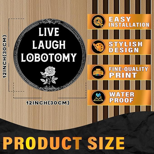 PEACHGARDEN Live Laugh Lobotomy Metal Tin Sign Vintage Gothic Wall Art Retro Plaque Decor Home Bar Bathroom Decor 12x12inch