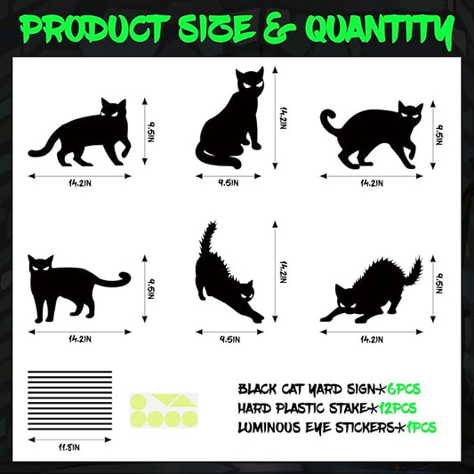 Upgraded 6 Pack Black Cat Halloween Yard Signs Outdoor with Glow in Dark Eyes,Scary Silhouette Halloween Decorations Outdoor for Pathway Graveyard Yard Garden Lawn Patio Party Supplies
