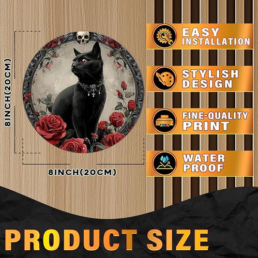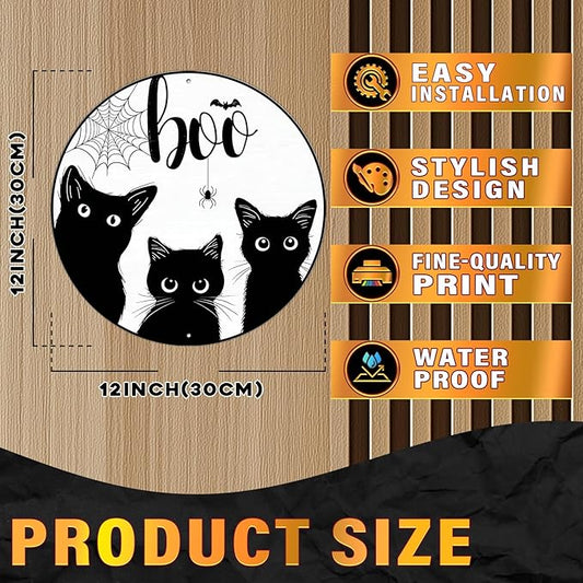 PEACHGARDEN Black Cat Halloween Metal Tin Sign Vintage Gothic Decor Boo Plaque Spooky Wall Art Retro Iron Painting for Home Porch Bar 12x12inch