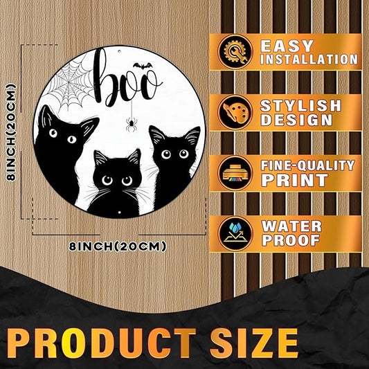 PEACHGARDEN Black Cat Halloween Metal Tin Sign Vintage Gothic Decor Boo Plaque Spooky Wall Art Retro Iron Painting for Home Porch Bar 8x8inch
