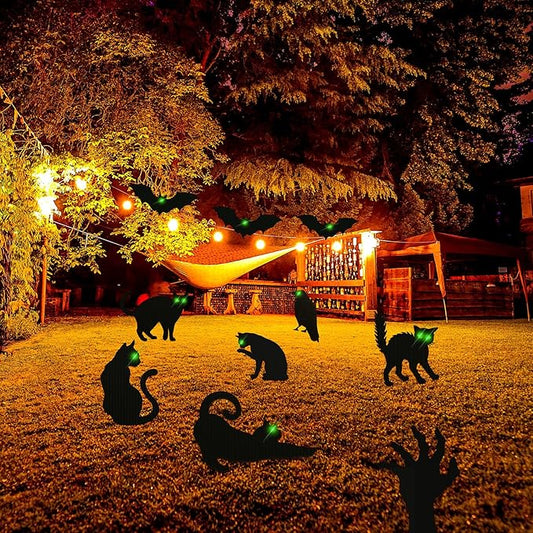 Blulu 8 Pcs Halloween Decorations Outdoor Black Cat Yard Signs with Stakes Scary Silhouette with Glow in The Dark Eyes Corrugated Plastic Waterproof Black Cat Decor for Garden Lawn Patio (Mixed)