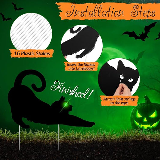 Blulu 9 Pcs Halloween Decorations Outdoor Black Cat Yard Signs with Stakes Scary Silhouette with Glow in The Dark Eyes Corrugated Plastic Waterproof Black Cat Decor for Garden Lawn Patio (Cats)