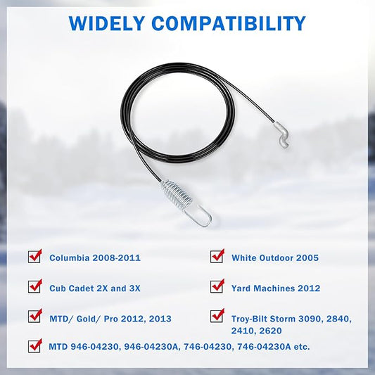 946-04230B Auger Clutch Cable Fits MTD Cub Cadet Troy-Bilt Columbia Snowblowers 746-04230B 946-04230A 946-04230 746-04230A 746-04230 (2Pc/Pack)