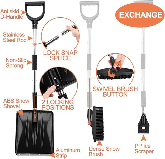 OCGIG 3-in-1 Portable Snow Shovel Kit with Ice Scraper and Snow Brush, Emergency Collapsible Design Snow Remover Set for Garden, Camping, Car, Trucks and Other Outdoor Activities
