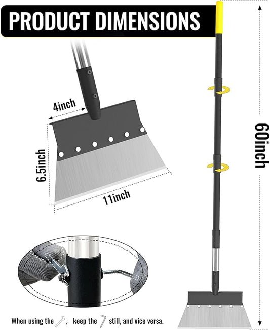Flat Shovel, 60 inch Ice Scraper, Snow Shovel, Floor Scraper with Adjustable Long Handle, Heavy Duty Ice Chopper, Multifunctional Weed Removal Tool for Driveway, Walkway, Garden and Outdoor Cleaning