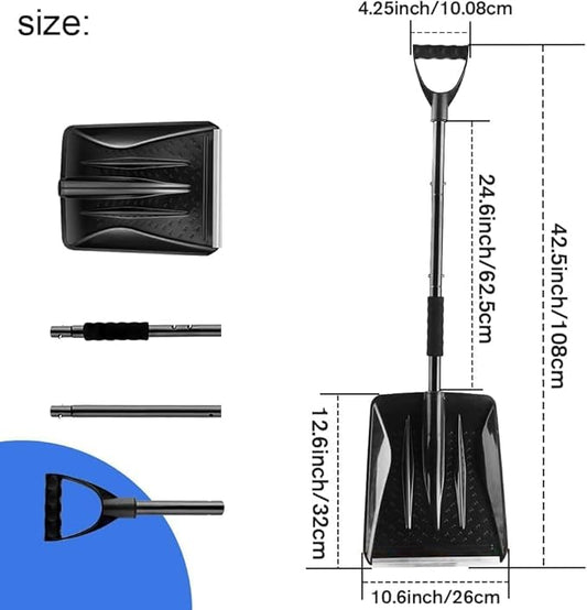 SHANTRA Folding Snow Shovel with Aluminum Edge, D-Grip Portable Shovel for Snow Removal, Lightweight Emergency Snow Shovel, Multifunctional Collapsible Shovel, Shovel For Car Driveway, Garden, Camping