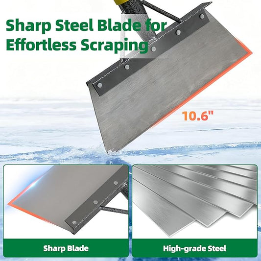Floor Scraper Long Handle - Ice Removal Tool, Multifunctional Garden Cleaning Flat Shovel, 60" Weed Scraper Heavy Duty Sharp Blade for Lawn Edging,Sidewalk Weeding,Driveway Steps Snow Shovel