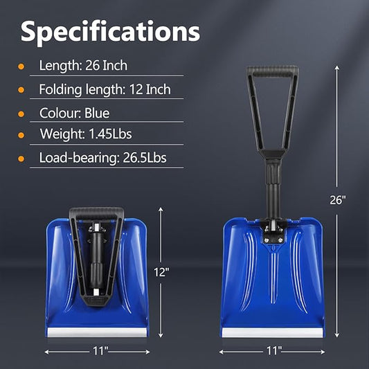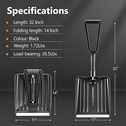 SHANTRA Folding Snow Shovel with Aluminum Edge, D-Grip Portable Shovel for Snow Removal, Lightweight Emergency Snow Shovel, Multifunctional Collapsible Shovel, Shovel For Car Driveway, Garden, Camping