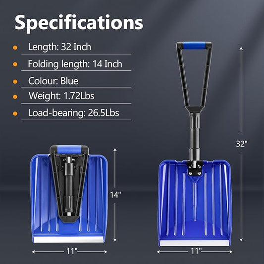 SHANTRA Folding Portable Snow Shovel, Aluminum Edge, D-Grip for Snow Removal, Car Driveway, Garden, Camping