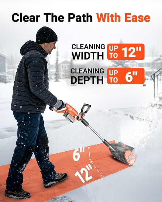Litheli Cordless Snow Shovel, 20V 12'' Brushless Electric Snow Blower for Driveway, Battery Powered Snow Thrower, 4.0Ah Battery Included