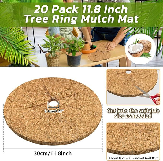 Legigo 20pcs Coconut Fiber Mulch Ring Tree Plant Protector Mat, 11.8 Inch Natural Coco Coir Tree Protection Ring Plant Pot Soil Cover, Tree Rings Disc Plant Cover for Indoor Outdoor Plants,Landscaping