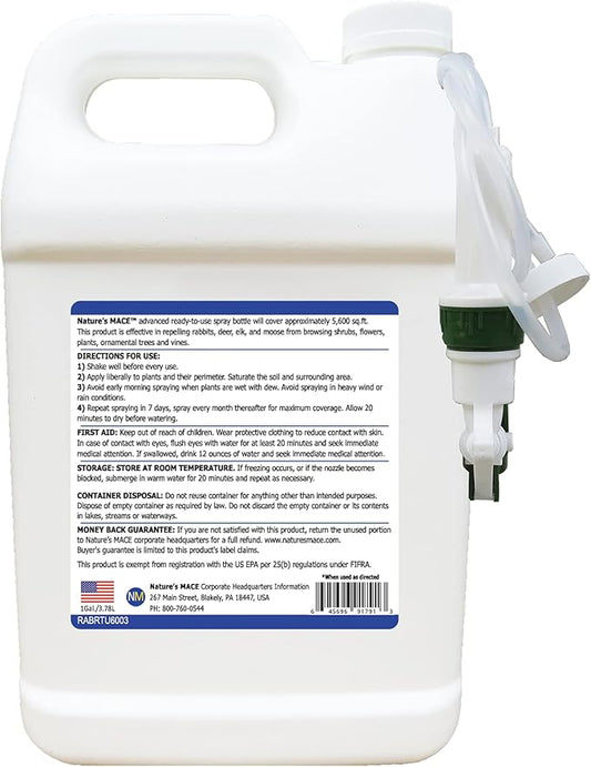 Nature’s Mace Rabbit MACE, Rabbit Deterrent for Yard, Rabbit Repellent Outdoor, Mint Scent Rabbit Spray, Garden, Lawn, Keep Rabbits Out, 1 Gallon Ready to Use, Safe Around People, Pets, Plants