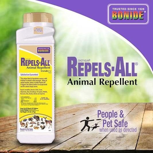 Bonide Repels-All Animal Repellent Granules, 1.25 lbs. Ready-to-Use Pellets Deter Pests from Lawn & Garden, Long Lasting Control