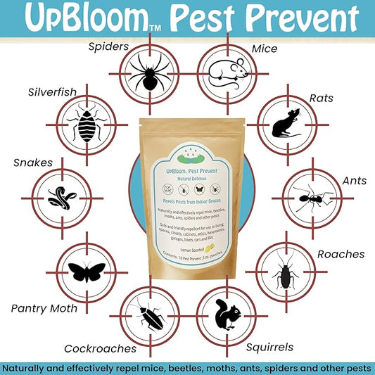 UpBloom - Pest Prevent All-Natural Repellents Home and Garage Defense from Mouse, Spider, Roaches, and Insects 10 Pest Control and Repeller Pouches