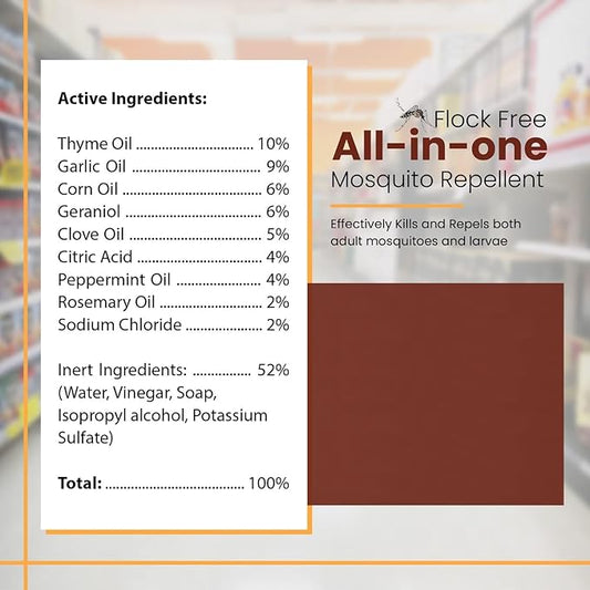 Natural Mosquito Control Spray Concentrate, Repels Mosquitoes, Ticks, Fleas, Flies, Gnats, and Chiggers Away. Makes up to 32 Gallons! (32 oz Concentrate)