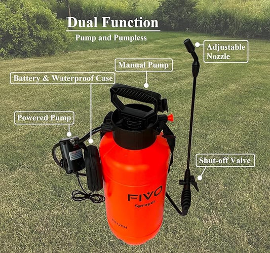 Battery Powered and Manual Sprayer (Dual Function) for Lawn, Garden and Agriculture with Rechargeable Lithium Ion Power Bank (5000 mAh) and Shoulder Strap (2 Gallon)