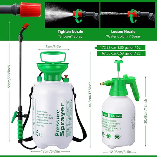 Tioncy 2 Pack 1.35 Gallon Pump Pressure Sprayer & 0.53 Gallon Handheld Garden Pump Sprayer with Adjustable Brass Nozzle Water Mist Spray Bottle for Lawn Garden Plants Weed Sprayer Cleaning Solutions
