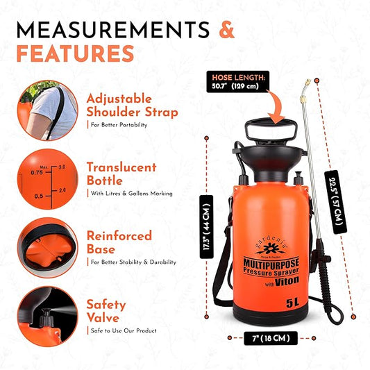 Pump Sprayer Upgraded Garden Sprayer with Viton Seals Telescopic Metal Lance, Premium Pumping Spray Bottle 5L-S with Spare Parts for Watering Plants Lawn Care & Home & Car Cleaning