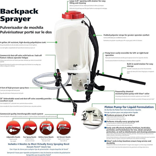 SOLO 425 4-Gallon Piston Backpack Sprayer, Wide Pressure Range up to 90 psi
