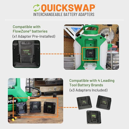 FlowZone Zephyr Flow Optimized QuickSwap Battery Powered Backpack Sprayer - 4 Gallon Electric Sprayer Compatible with FlowZone, DeWalt, Milwaukee, Makita, & Bosch Batteries (Battery Not Included)