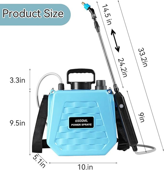 Electric Sprayer, Battery Powered Sprayer 6L/1.6 Gallon, with 3-Adjustable Nozzles, Retractable Wand, Rechargeable Handle & Adjustable Shoulder Strap, Suitable for Garden, Lawn & Cleaning.