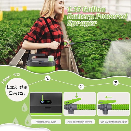 Battery Powered Sprayer 1.3 Gallon, Lightweight Electric Garden Sprayers in Lawn and Garden, 3 Mode Automatic Cordless Weed Sprayer for Yard, Pesticide, Watering, Cleaning