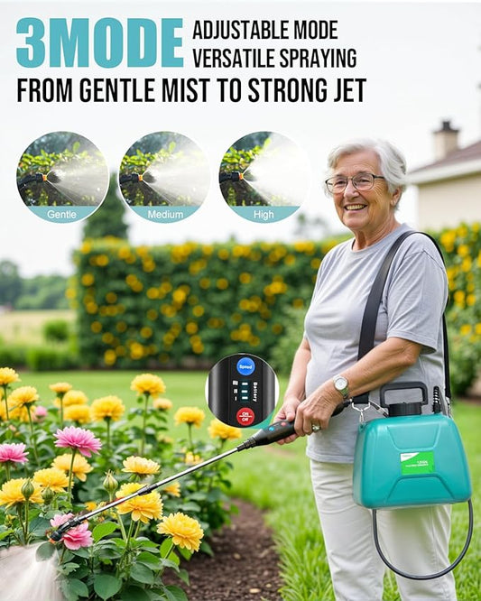 Battery Powered Garden Sprayer, 1.35 Gallon Electric Sprayer with USB Rechargeable Handle, 3 Mist Nozzles, Retractable Wand, Battery Pump Sprayers with Adjustable Shoulder Strap for Lawn and Yard