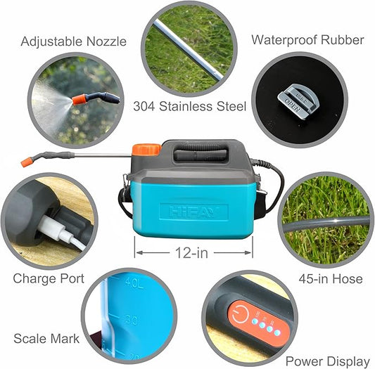 2025 New 7.4V Powerful Electric Sprayer with Waterproof Handle, USB Charging, 6 Spray Heads, 3.1 gallons, Adjustable Rod and Shoulder Strap, Suitable for Gardens, lawns, etc., Lasts About 3 Hours