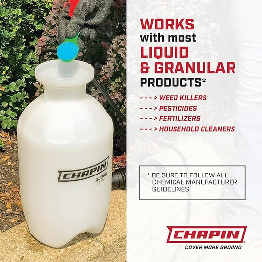 Chapin 20002 Made in USA 2 -Gallon Lawn and Garden Pump Pressured Sprayer, for Spraying Plants, Garden Watering, Lawns, Weeds and Pests, Translucent White