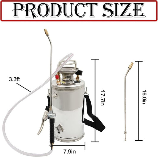 Hand Pump Sprayer Stainless Steel Sprayer for Indoor and Outdoor 1.5 Gallon Sprayer 16 in Wand 3.3 FT Hose