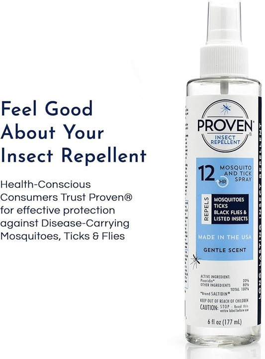 Proven Insect Repellent Spray, Keep Mosquitoes, Ticks and Flies Off, DEET Alternative Repellent, Up to 12-Hour Protection, Great for Camping or Hiking, 6 Ounce, Gentle Scent Spray
