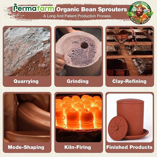 Permafarm® Organic Bean Sprouter, Natural Earthen-Clay Mung Bean Sprouter, Sprouts Growing Kit for Soybeans, Broccoli, Alfalfa & More | Lead-Free, Cadmium-Free (Small Size for Individuals or Couples)