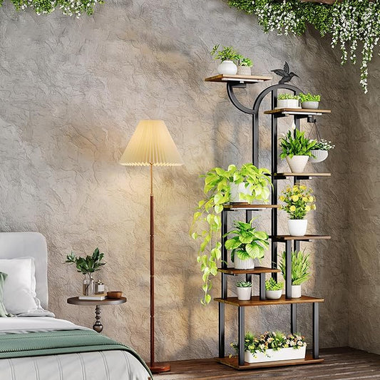 Indoor Plant Stand with Grow Lights ,Stylish S-Shaped Metal Rack for Multiple Indoor Plants ,8-Tiered Tall Plant Shelf for Home and Patio ,Perfect for Plant Lovers
