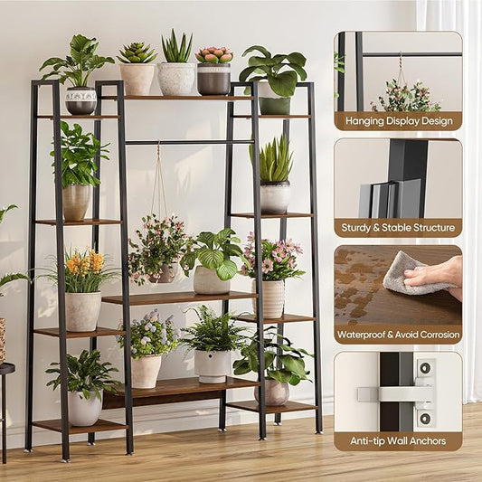Plant Stand Indoor with Grow Light - 72" Tall Plant Shelf Indoor, 5 Tiered Corner Plant Stands for Indoor Plants, Hanging Plant Holder Flower Display Shelves for Living Room, Balcony Decor