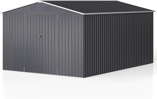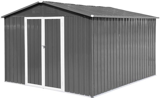 MUPATER Storage Shed 10' x12' for Outdoor, Metal Shed Kit with Lockable Doors and Vents, Patio Tool Shed House for Backyard, Garden, Lawn, Grey