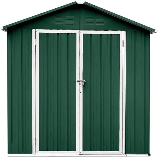 6ft x 4ft Outdoor Storage Shed Apex Roof Tool Shed Outdoor Storage Metal Garden Sheds Tool Cabinet with Galvanized Steel Construction for Backyard, Patio, Poolside, Green