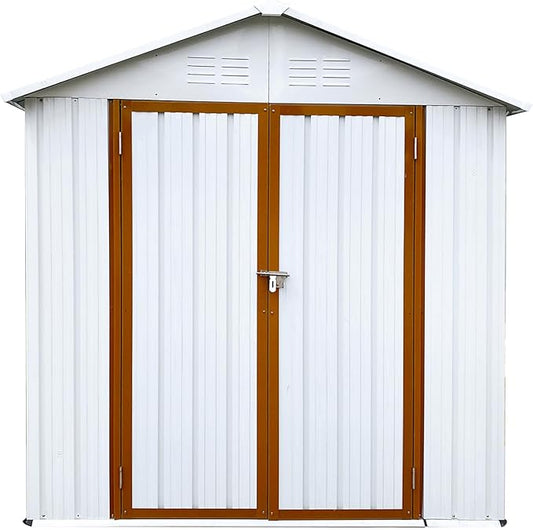 6ft x 4ft Outdoor Storage Shed Apex Roof Tool Shed Outdoor Storage Metal Garden Sheds Tool Cabinet with Galvanized Steel Construction for Backyard, Patio, Poolside, White + Yellow