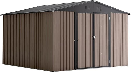10X10X7.5 FT Outdoor Steel Storage Shed with Lockable Doors, 2 Windows, Frame Floor (No Wood/Other Boards), Ideal for Garden, Backyard, Patio Storage,Brown