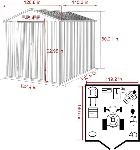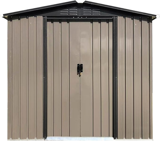 GVDV 8x6 FT Outdoor Metal Storage Shed, 7.3x5.3 FT Base Durable Garden Shed with Updated Frame Structure for Backyard, Patio, Tool Storage, All-Weather Shelter for Bike, Gardening Tools, No Floor