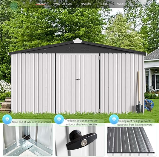 Outdoor Storage Shed, 10X8 FT Galvanized Steel Metal Shed, Lockable Waterproof Tool Storage Sheds for Garden, Patio, Lawn – Durable Storage Solution in Multiple Sizes